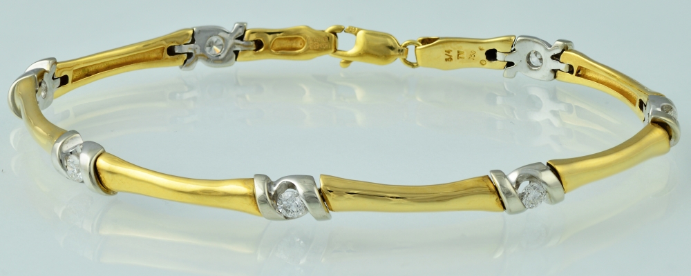 Make her feel special, give her a dazzling diamond bracelet highlighted by rich 18 karat yellow gold and accent with the cool tone of white gold. This sparkling bracelet is built with 7/10 carat, 7 sensational round brilliant diamond – lucky number seven. The perfect gift for any occasion, this bracelet is only one third of the appraised value at Premier Jewellery & Loans.