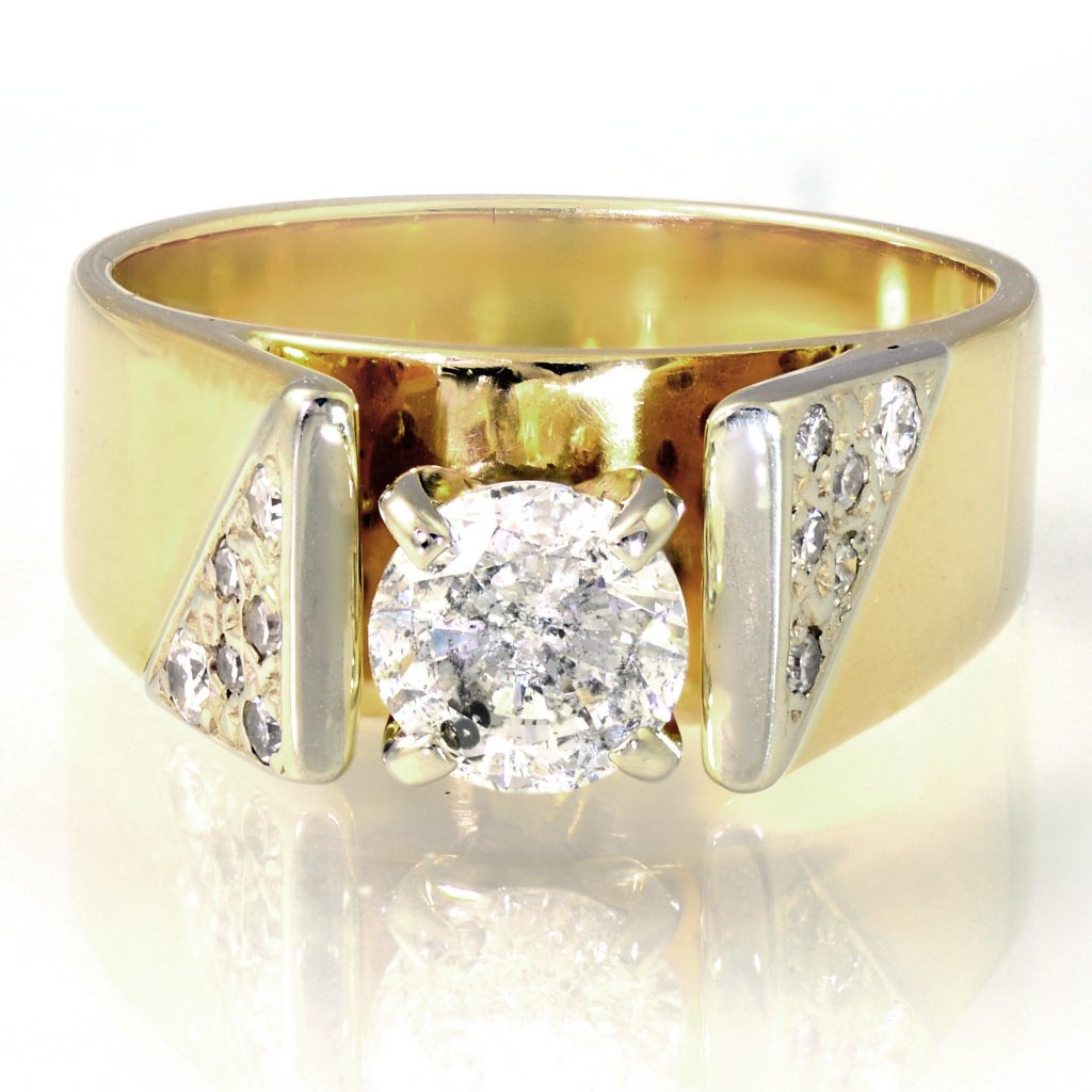 She is one in a million, that’s what you’re telling her when you slip a 1 carat diamond on her finger. This 1 carat, I2 clarity and G-H colour solitaire is set in the warm colour of 14 karat yellow gold flanked by 12 VS clarity and F-G colour diamonds to make it sparkle even more brilliantly. Make sure she knows how much you love her. Size 7.5.