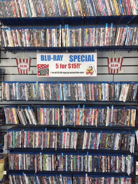 We’ve dropped our Blu-Ray prices AGAIN! All regular priced ($3.99) Blu-Ray’s are now 5 movies for $15! And we have more selection than ever! Check it out today.