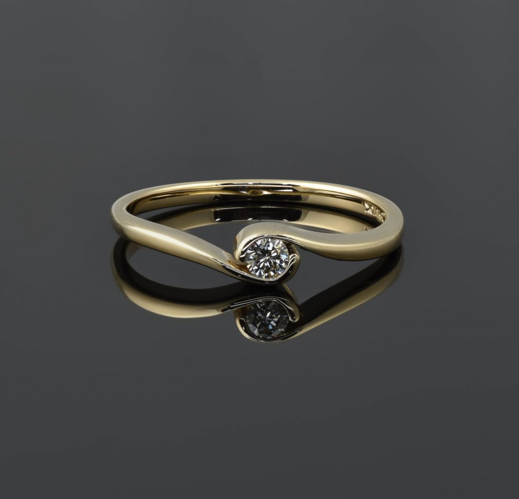 A single diamond is a beautiful expression of love and devotion. Let her know that you love her and promise to cherish her. This 1/20th of a carat diamond sits in 10 karat yellow gold and is 1.55 grams total. Size 6.5.
