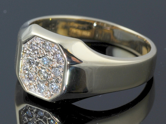 Why not give him a little bit of sparkle! This debonair 1/5 carat diamond and 10 karat yellow gold ring will look handsome on his finger.