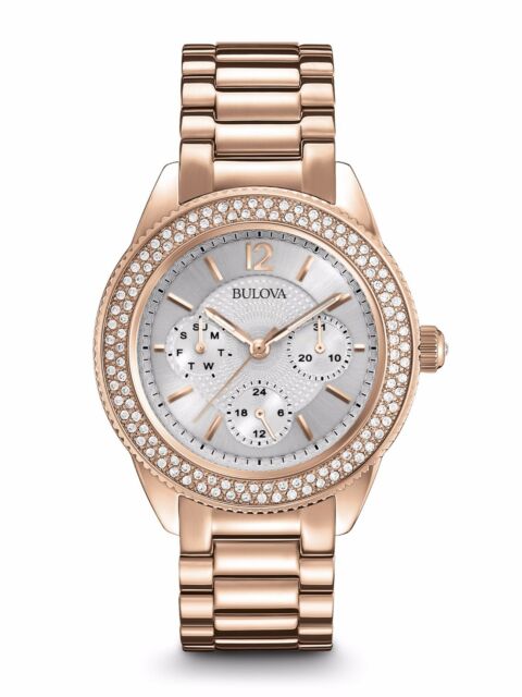 For those who like bling! This Bulova crystal edition watch is fashioned with 121 hand-set Swarovski crystals on case and crown making it sparkle from EVERY direction. Combined with a beautiful rose gold finish and date subdials, not only will it look amazing on but it will also help keep you on time! Style: Fashion Movement: Quartz Water Resistance: 30 Meters Crystal Type: Mineral Size Of Case: 38 mm Bracelet Type: Stainless Steel Extra Features: Day and Date Comes With: Box and Papers Our listings only represent a small selection of our inventory. Come in and see our store, just off Springfield behind Cloverdale Paints, you never know what you’ll find. Feel confident buying from Premier, we offer a 30 day warranty on most items, some exceptions do apply. **Please note, photos are vendor supplied. For pictures of the actual items e-mail us and we would be happy to take photos for you.** **Please note, Premier does not offer a warranty on sale priced items, however staff would be happy to demonstrate the item before you buy.** INV#: PJL001048 Model # 97N101 |