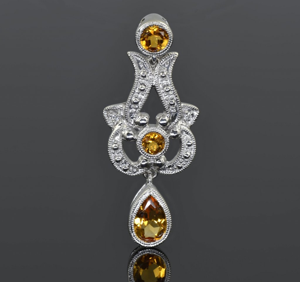 If you have a November baby in your family and you want to get an amazing gift then this will be the perfect gift for her. This sensational diamond and yellow gemstone pendant will look amazing around her neck. Created with a total of 2.3 grams and made with 10 karat white gold, diamonds and yellow gem this pendant is spectacular.