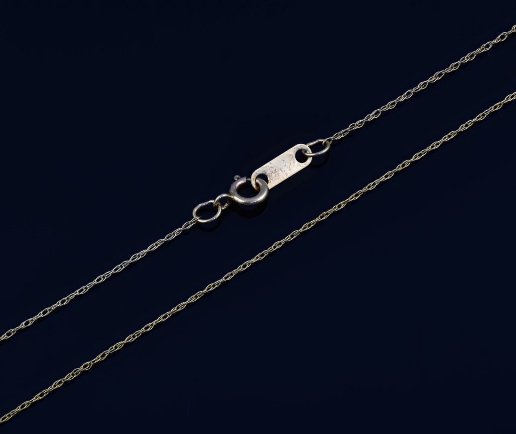 A delicate necklace is the perfect way to showcase your favourite pendant. Created with 0.45 grams of 14 karat yellow gold this fine rope link chain will make any pendant stand out on your neck. This chain is 19 inches long.