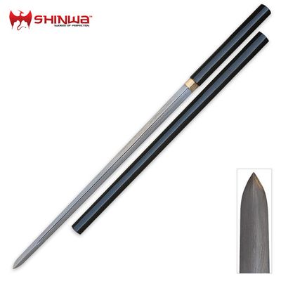The Shikomizue has been a favorite among sword enthusiasts for some time. As with all Shinwa swords, this sword has been expertly crafted, heat tempered for superb functionality, and build to perform with a razor sharp edge. The black Damascus steel offers more than 2,000 layers of supreme cutting power only found in a Shinwa sword